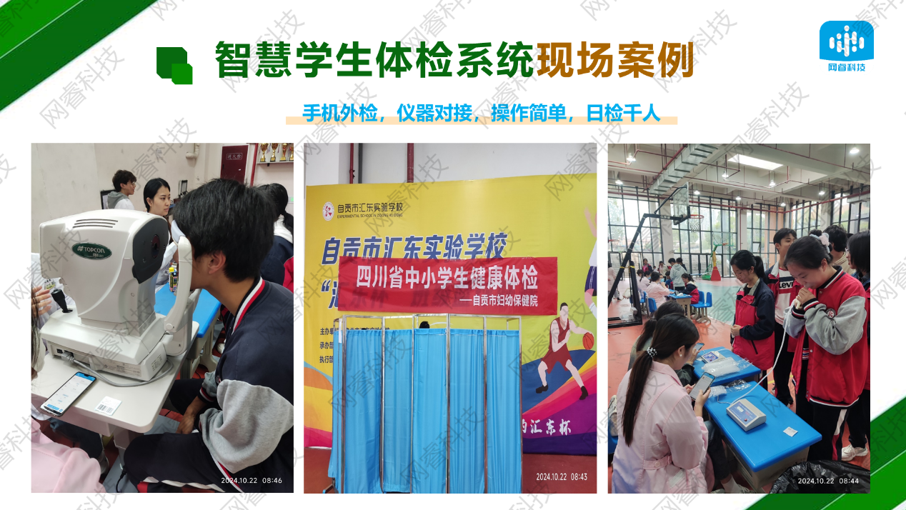 网睿智慧学生健康体检系统配合学校及教育机构完成春、秋季健康体检工作,其操作简单,医生只需携带手机即可完成全科检查,日检达到1200多人,其高效准确的特性被广泛应用于各大中小学及高职院校。学生的定期的健康体检,可以监测学生的身体发育情况和健康指标,做到问题的早发现,早干预,促进学生体质达标。
